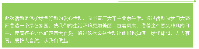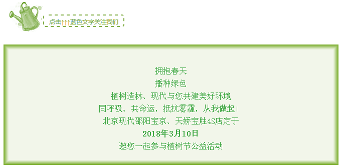 赶紧带上家人、孩子加入北京现代邵阳宝京、天娇宝胜4S店举行的绿色家园植树自驾游活动吧!