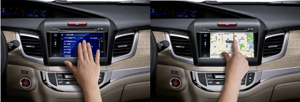 JADE(杰德)的DA系统采用了7英寸静电触屏,它包含了蓝牙电话、音响系统、车辆行车电脑显示等基本功能,而最大的亮点在于其通过数据线、蓝牙等方式与智能手机进行连接,从而直接利用智能手机中的APP实现某些功能,例如大家常用的导航功能。