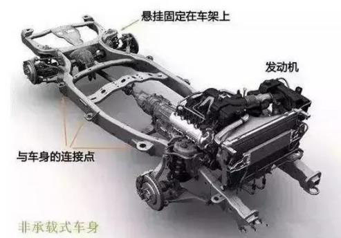 非承载式车身与承载式车身对比:
