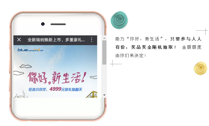 您的电话号码将成为本次活动奖金分享的唯一识别码,建议先阅读活动规则,了解活动规则后点击“即刻开启”,全新瑞纳将带你打开美好新生活!