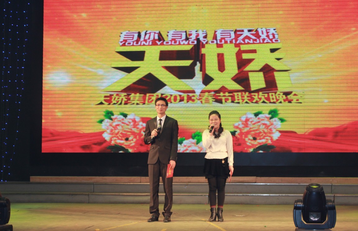 2013年2月4日,天娇实业集团,“有你 有我 有天娇”——2013春节联欢晚会在华都大剧院举行,公司同事们用精彩的文艺表演,展现公司员工良好的精神面貌与卓越的表演才能。晚会邀请了邵阳新闻媒体、事业合作单位等嘉宾到场,与天娇集团员工一同观看演出。