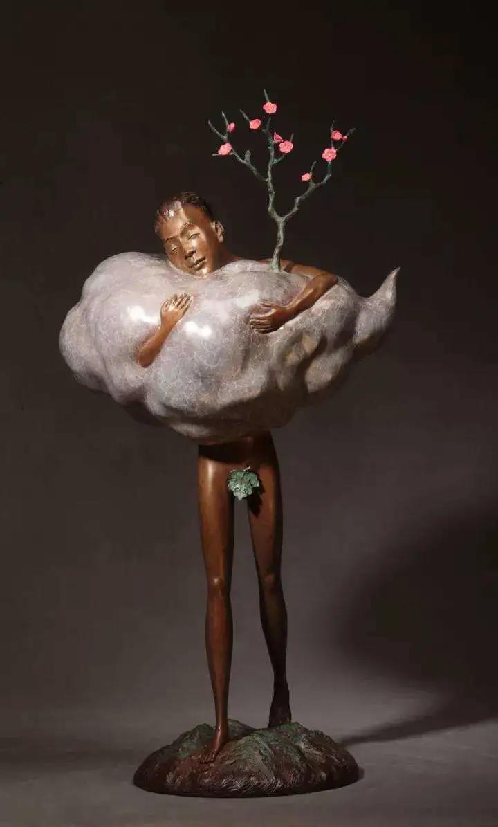 凡是驾车去到宋庄艺术区的人,在行径宋庄环岛时一定会留意到环岛中间高耸的地标性的建筑,陈灵平称它为“七层塔”。它像倒扣的喇叭,从下往上逐渐收紧,以水泥、红砖、钢铁等不同的材质层层堆叠,一直延伸到金灿灿的顶尖。这是著名艺术家方力钧老师的作品,寓意“从草根至金顶,阶层分明”,也是宋庄艺术生态的象征。“艺术家或许不像坐在写字楼里的人那样每天996,但这个行业终究和这座塔的寓意一样,你只有无比努力,才有机会爬到塔尖。”在这里打拼十余年的“老宋庄人”,陈灵平见证了宋庄从默默无闻的小村庄发展到名镇一方的艺术产业区,也见过无数追梦者来过、离开。“不是每个人都能坚持下去,选择生活在宋庄的艺术家,都在苦苦追求自己的艺术理想。”在宋庄的这些年,陈灵平正是这样一步一步的摸爬滚打,经过几年的沉淀,思考,慢慢找到自己艺术创作的契合点。在他的艺术路线发展过程中,每个时期的雕塑作品都遵从自己当时的心境,比如《青春系列》是刚离开校园时青春的创作冲动。而后续几年面对生活的压力以及亟需确定自己艺术风格,以内心的焦躁和无处释放的压力为原点,创作出《孤独者的梦》系列作品。《孤独者的梦》系列作品一经展出,即获得行业专家和前辈的高度评价,陈灵平也由此确定了以“花枝”为符号的艺术风格。而近几年陈灵平的主要作品也延续了“花枝”的符号元素,这就是更广为人知的《梦寻桃花源》系列。《梦寻桃花源》系列参加过一系列展览,不仅收到业界好评也被多家艺术机构和高档酒店收藏。在陈灵平的工作室里,我还看到了更多蕴含着“花枝”符号的创意作品,其中不乏尚未发布的全新系列。对于陈灵平来说,追求艺术成就的道路上从来没有休止符,哪怕在聊天的过程中,他也兴奋的和朋友们分享未来的创意思路和展览规划。