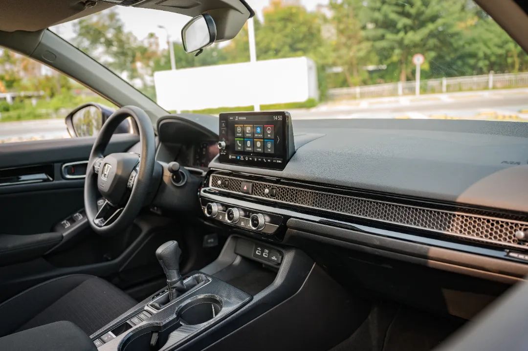 思域贯穿中控台的蜂窝状格栅也是很吸引眼球的,风格大气,后面还隐藏了空调出风口,特别有质感,看得出用心了。