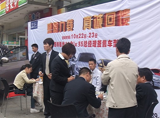 本次车展在活动安排上有两个比较突出的亮点:一个是热门车型IX35限量10台的优惠大酬宾活动,在活动前,市场部对车展进行游展宣传,尽可能的让更多的市民知道本次车展的活动详情,尽可能多的送出天娇集团为邵阳市民带来的实惠。