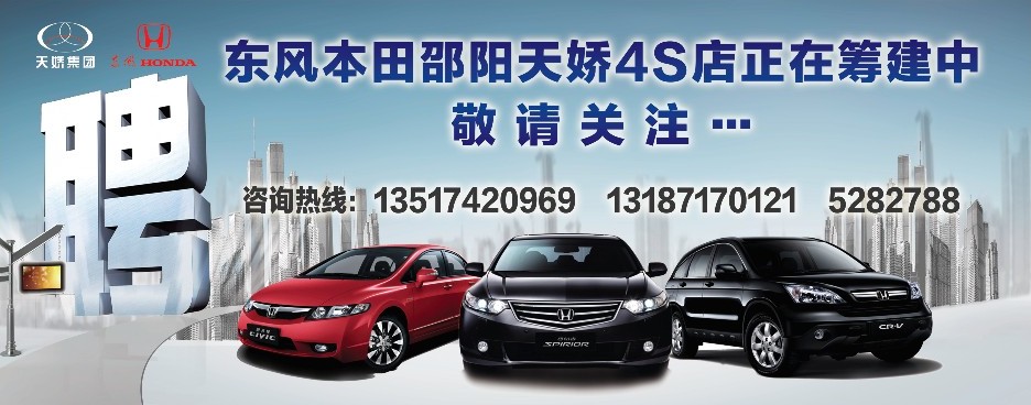 东风本田邵阳天娇4S店招贤纳士啦