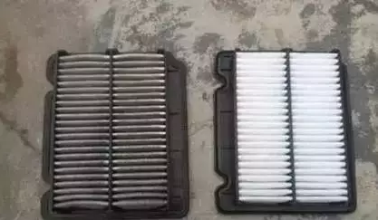 干净的汽油需要与纯净的空气混合燃烧才能发挥最大的燃油经济性。我们可以看到下图空气滤清器外观的对比,是非常明显。一般更换空气滤清器的周期为1万至1.5万公里,如果超出更换范围空气滤清器将失去过滤空气进入发动机内的杂质,如此一来,对发动内部活塞、进排气门、活塞环、汽缸的保护就失去作用,夸张想象一下,发动机在3000转速的时候 汽缸里面含有一些小沙子一起摩擦可是什么情况?
