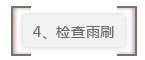 雨天路面湿滑、视线受阻,所以必须提前做好雨刮器的检查,避免因冬季长期未用而导致雨刷老化、产生塑性变形。可以将雨刮器调至各个速度运转,注意是否有震动、异响、刮水不均匀等现象,并用手按压雨刮片,检查是否损坏及有无弹性,发现问题应及时更换!