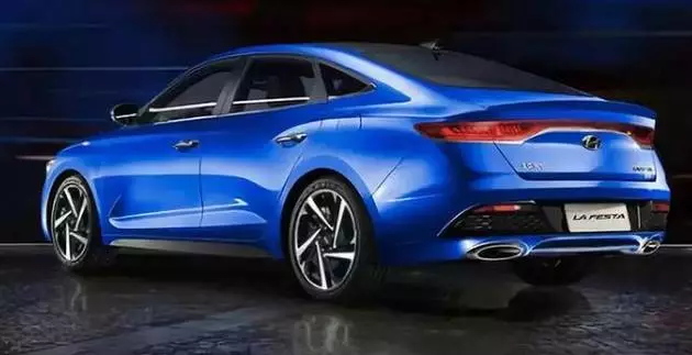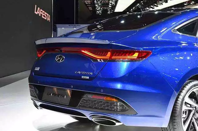 LA FESTA菲斯塔应用了现代汽车全球最新Sensuous Sportiness设计理念 ,并融入了很多中国元素设计。LA FESTA菲斯塔前脸采用龙鳞状进气格栅,搭配两侧极具辨识度的一体式LED大灯,整体造型十分显眼,且大灯眼角处带有日间行车灯。新车前保险杠两侧雾灯处采用类似空气动力学设计,同时两侧嵌入细长的灯带,立体感极强。