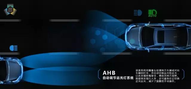 AHB自动调节远光灯系统针对夜间安全行车研发,利用摄像头,检测前方车辆或对向车辆的灯光,并自动切换远光和近光,以此来辅助驾驶员,确保其前方视野。