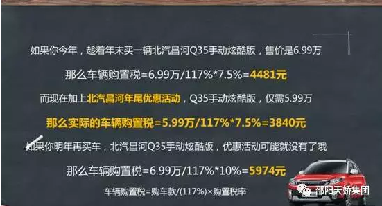 但是,现在有一个钜钜钜钜钜钜惠,一直精打细算未买车的他们肯定不知道,也不能让“节约帝”们再次错过了。别怕还未开口就被“教育”花钱大手大脚,默默的说一句“能节省2100多!”看“帝王”变身小绵羊,乖乖听你算这一笔关于买车购置税的账~!